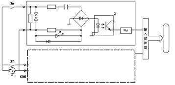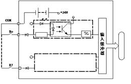 接到PLC輸入接口的輸入器件是:各種開(kāi)關(guān)、按鈕、傳感器等。各種PLC的輸入電路大都相同,PLC輸入電路中有光耦合器隔離,并設(shè)有RC濾波器,用以消除輸入觸點(diǎn)的抖動(dòng)和外部噪聲干擾。PLC輸入電路通常有三種類型:直流(12∽24)V輸入、交流(100∽120)V輸入與交流(200∽240)V輸入和交直流(12∽24)V輸入